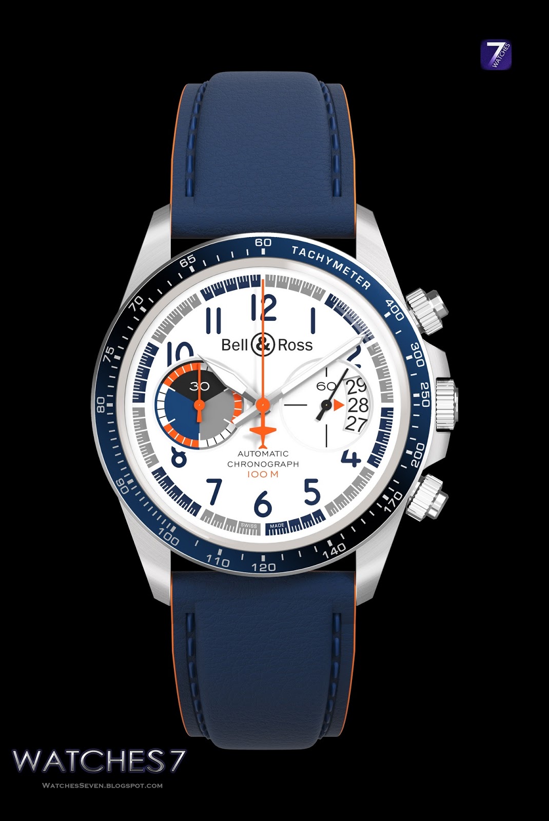 The central second hand, details on the dial and lining of the leather strap are orange, like the color highlighting the most important information on the flight instruments. The timer is grey, reminiscent of the chequered flag used in speed competitions, like the Bell & Ross logo on the wings and flanks of the aircraft.