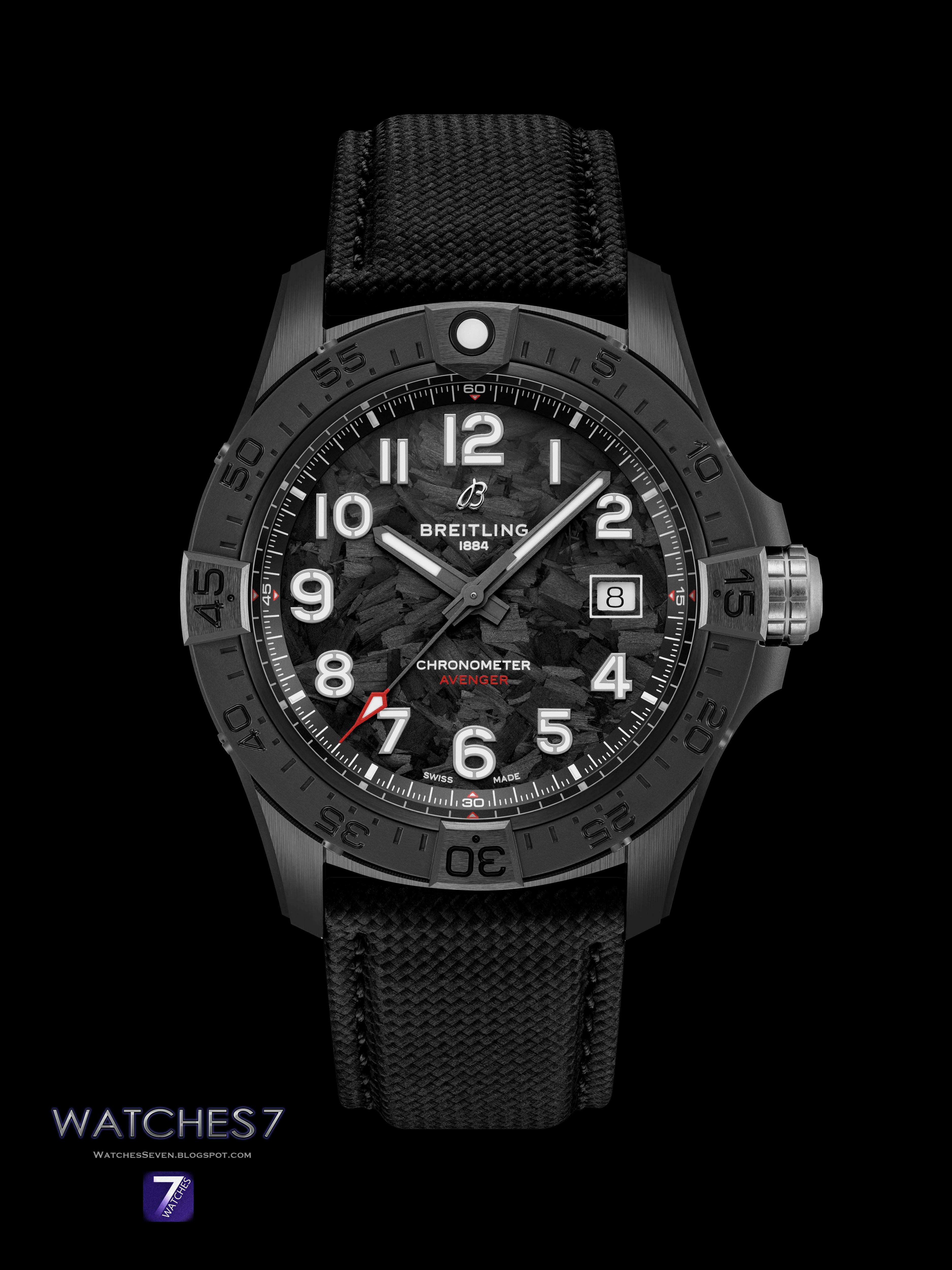 The new Avenger Automatic 42 Night Mission model comes with a black military leather strap, ceramic case, and carbon dial.